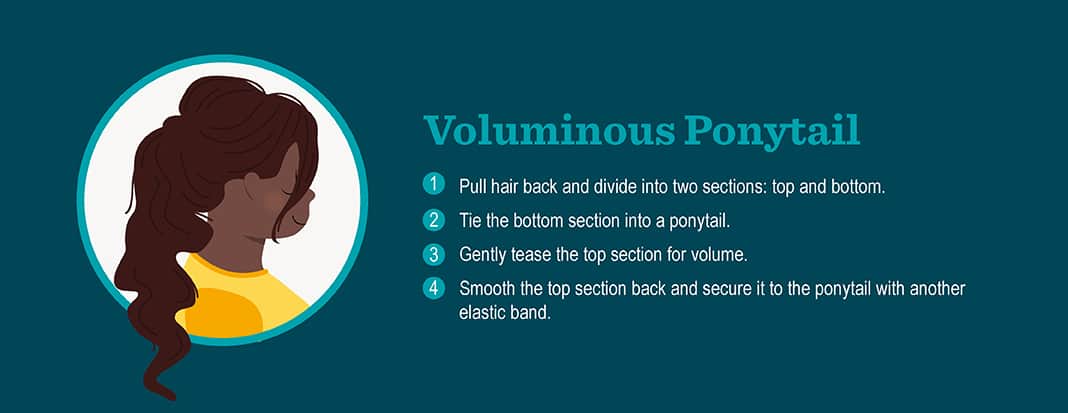For a style that’s dinner- and heat-approved, tie your hair up between the nape of the neck and the tip of your ear. By sectioning the hair into two elastics, you’ll achieve more volume than tying it all with one elastic. For an even more polished look, pull out a section of hair below the ponytail and wrap it around the elastic, securing with bobby pins.