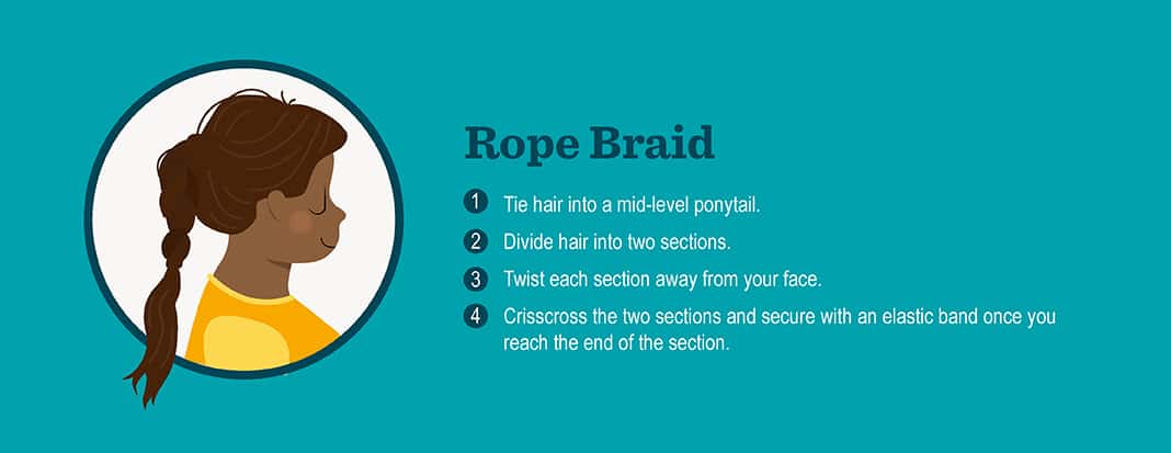 When a basic pony won’t cut it, try a two-strand rope braid for an alternative style that’s chic, too.