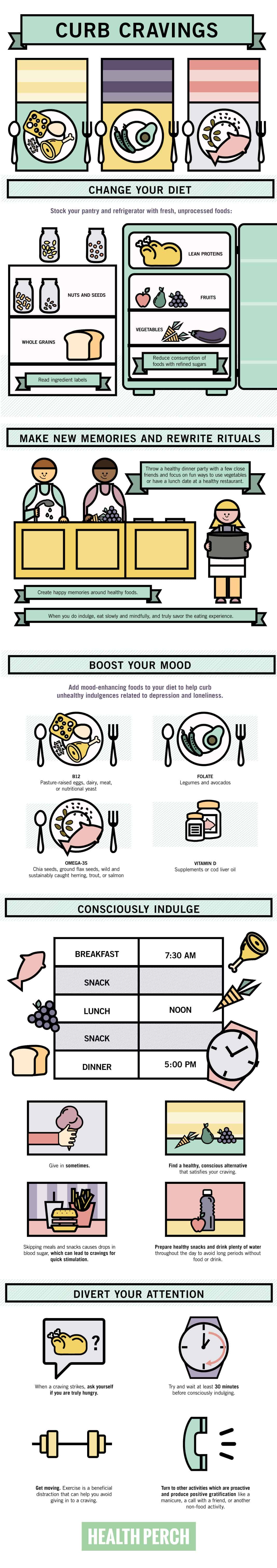 It is essential to not let emotions and memories interfere with healthy food intake. Continually question yourself when a craving strikes. Is it because I am sad and lonely, or that it’s Sunday night? Or, did I wait too long between meals and snacks? Being in tune with your body and remaining consciously aware of how and when you indulge are key techniques to curb cravings.