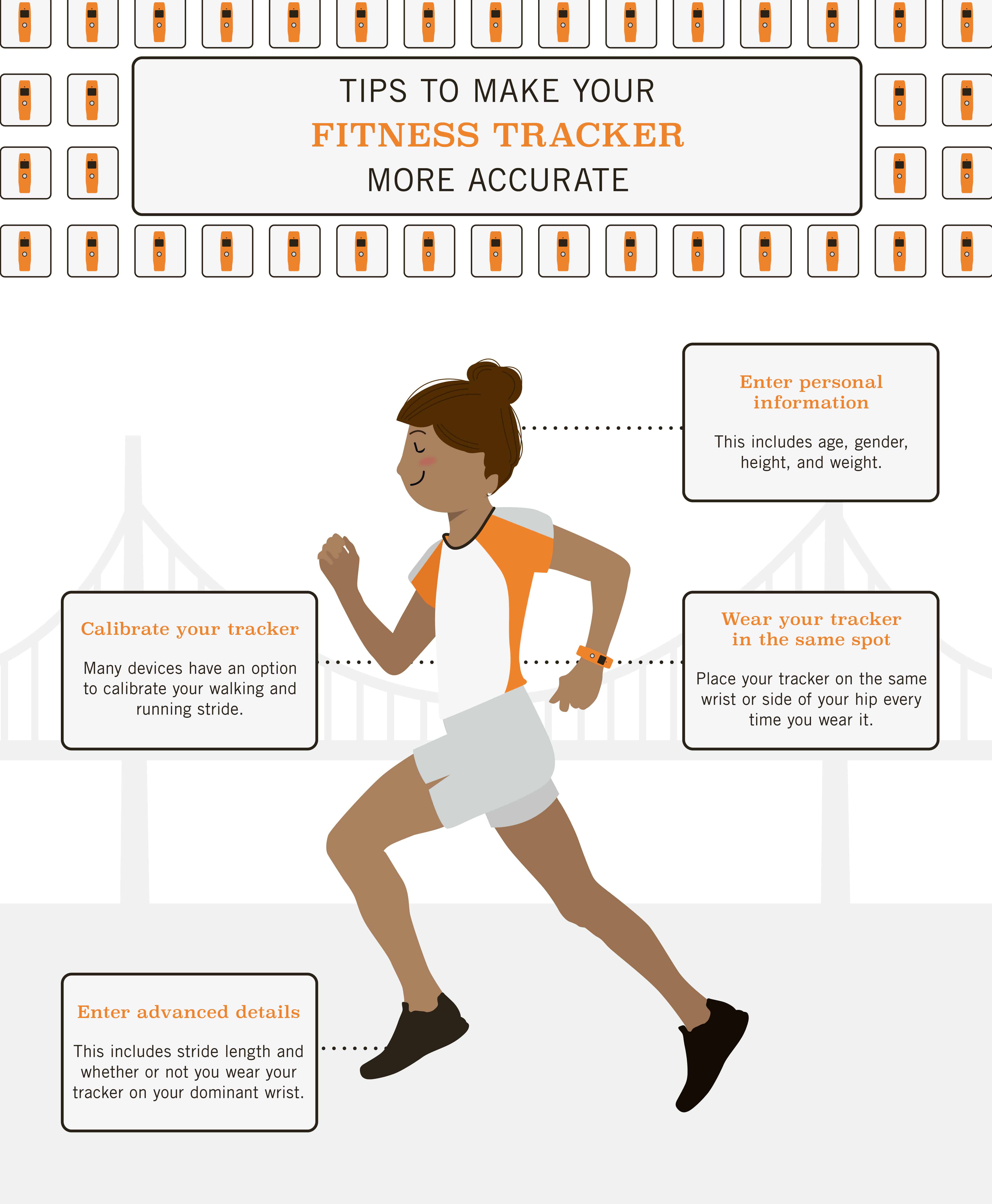 Tracking success begins by setting up your device properly in the dashboard. Entering metrics such as age, gender, height, and weight can help certain trackers better estimate how many calories you burn. While every tracker has different features, many allow you to further customize tracking by entering things like stride length or wrist used.