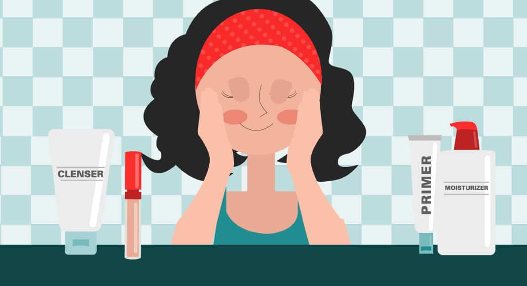 Foundation needs a clean, smooth surface for proper blending. Cleanse, then apply moisturizer. Wait five minutes for it to absorb into the skin. Primer is not necessary unless you’d like your makeup to last all night, or want to reduce the appearance of large pores. If you use concealer, apply it after foundation—you’ll end up using less and the base will prevent it from creasing.