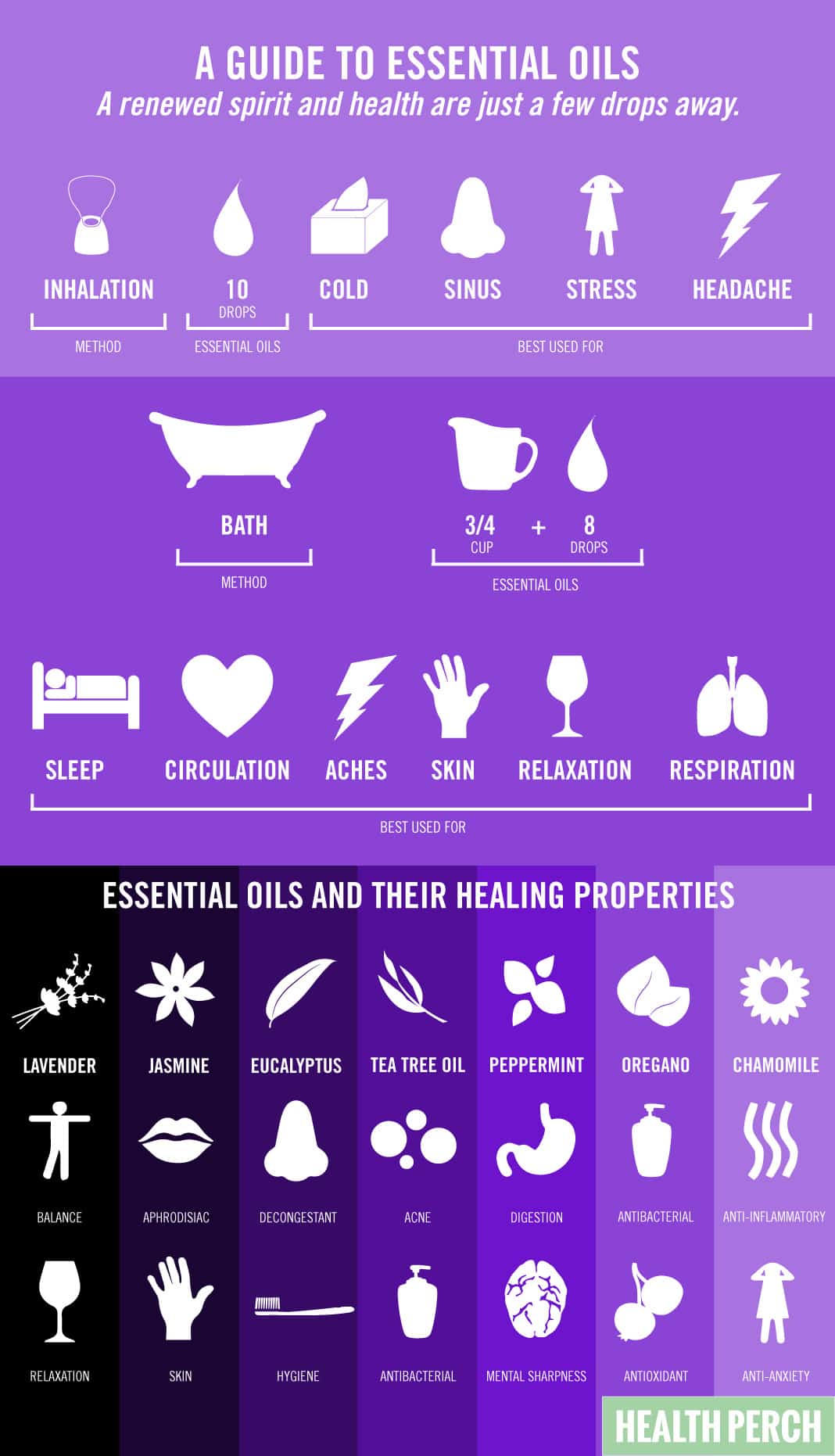 Massages with a 2.5% concentration of essential oils is a classic way to relieve muscle tension and relax. Palm Inhalation should only be used with oils that can be tolerated on the skin. Rub two drops of a healing antimicrobial oil between palms and inhale to clear out sinuses and distress.