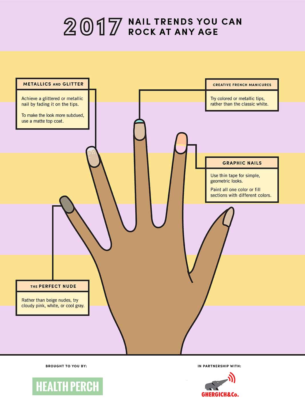 Experiment with this year’s nail trends and find your favorite style. If DIY manicures are daunting, head to the nail salon and request a trendy design from an expert.