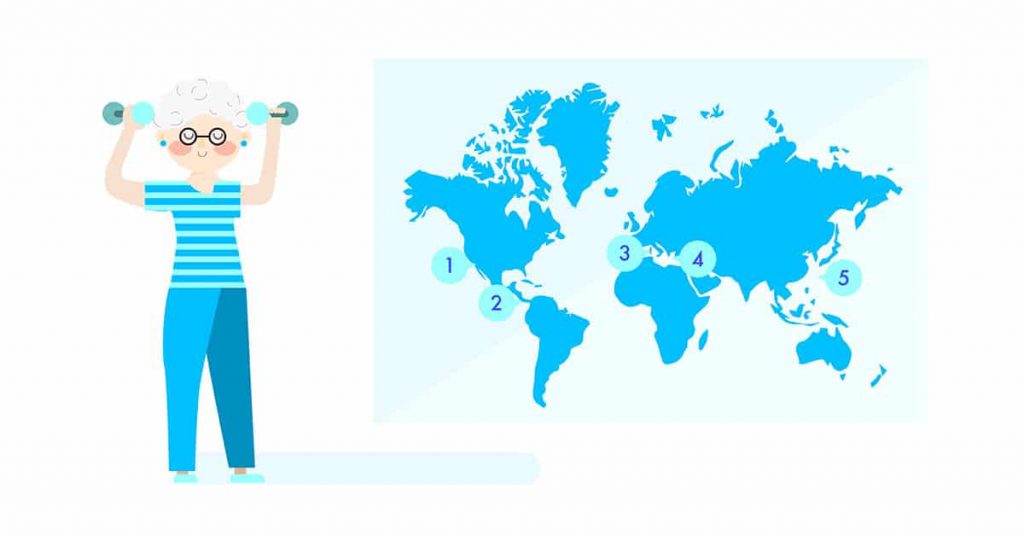 - Nicoya, Costa Rica, where residents emphasize a positive outlook, active lifestyle, and sense of purpose