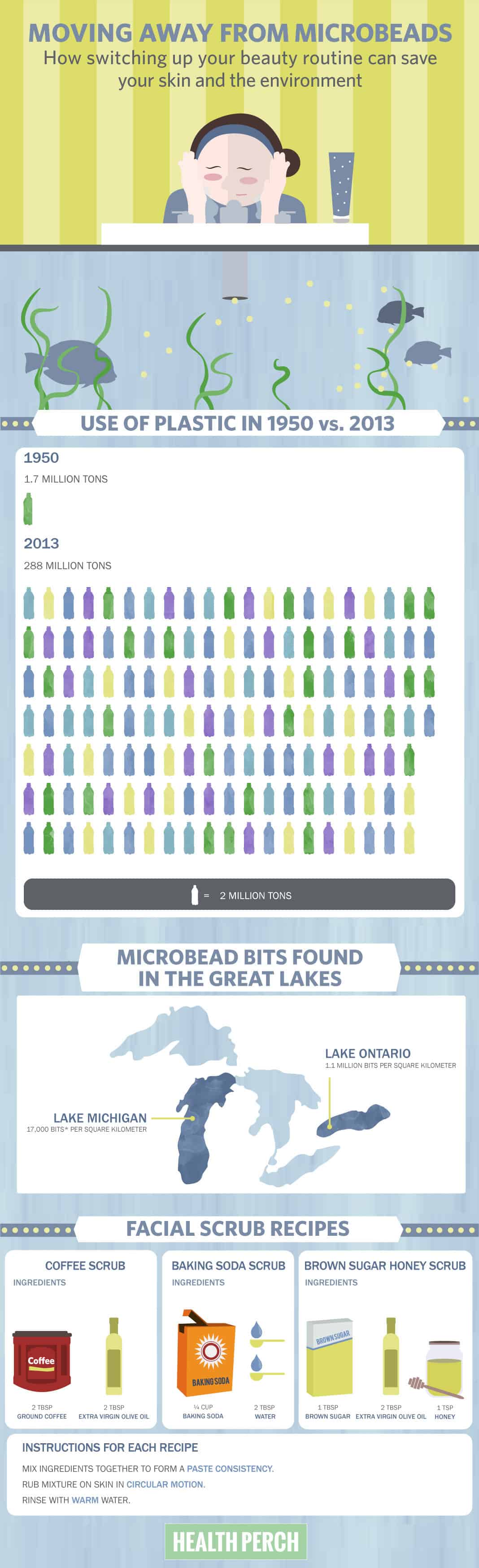 As you’ll notice, a lot of the exfoliants available in stores are made with microbeads–small, plastic rounds no bigger than 5 millimeters in diameter. Personal care products boast the beads are an agent for cleaner, smoother skin, which makes the product more appealing to a consumer.