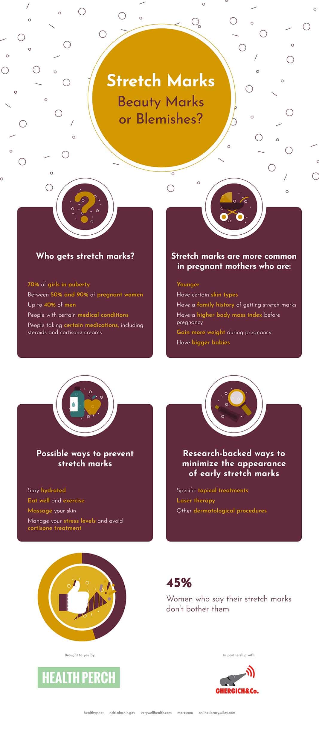 Nearly half (45 percent) of women in one study said their stretch marks don’t bother them. If you think of stretch marks as your tiger stripes or a badge of honor, keep celebrating them! If you’d prefer to prevent or minimize them, give these research-backed methods a try.