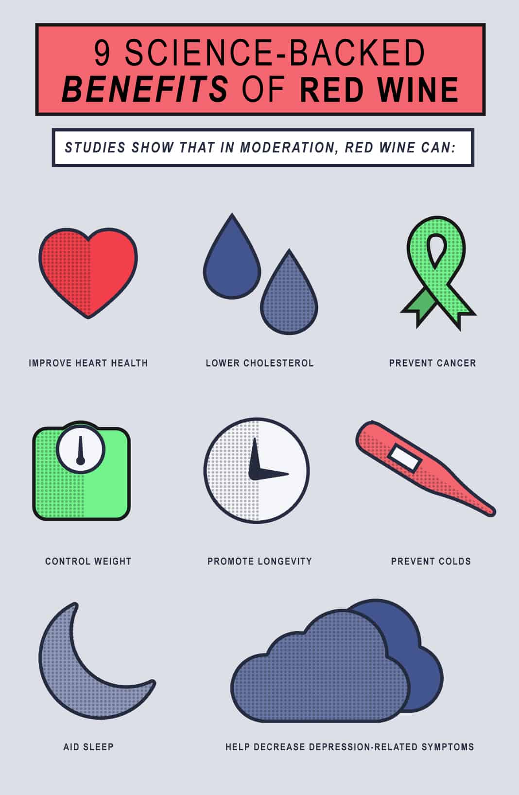 The bottom line? While many studies link red wine to better health, it’s important to understand that adopting a healthy lifestyle is the key to feeling good. As long as you do not exceed one to two glasses a day, and fill in the rest of the blanks with a balanced diet, regular exercise, and enough sleep, a little red wine can do the body good.