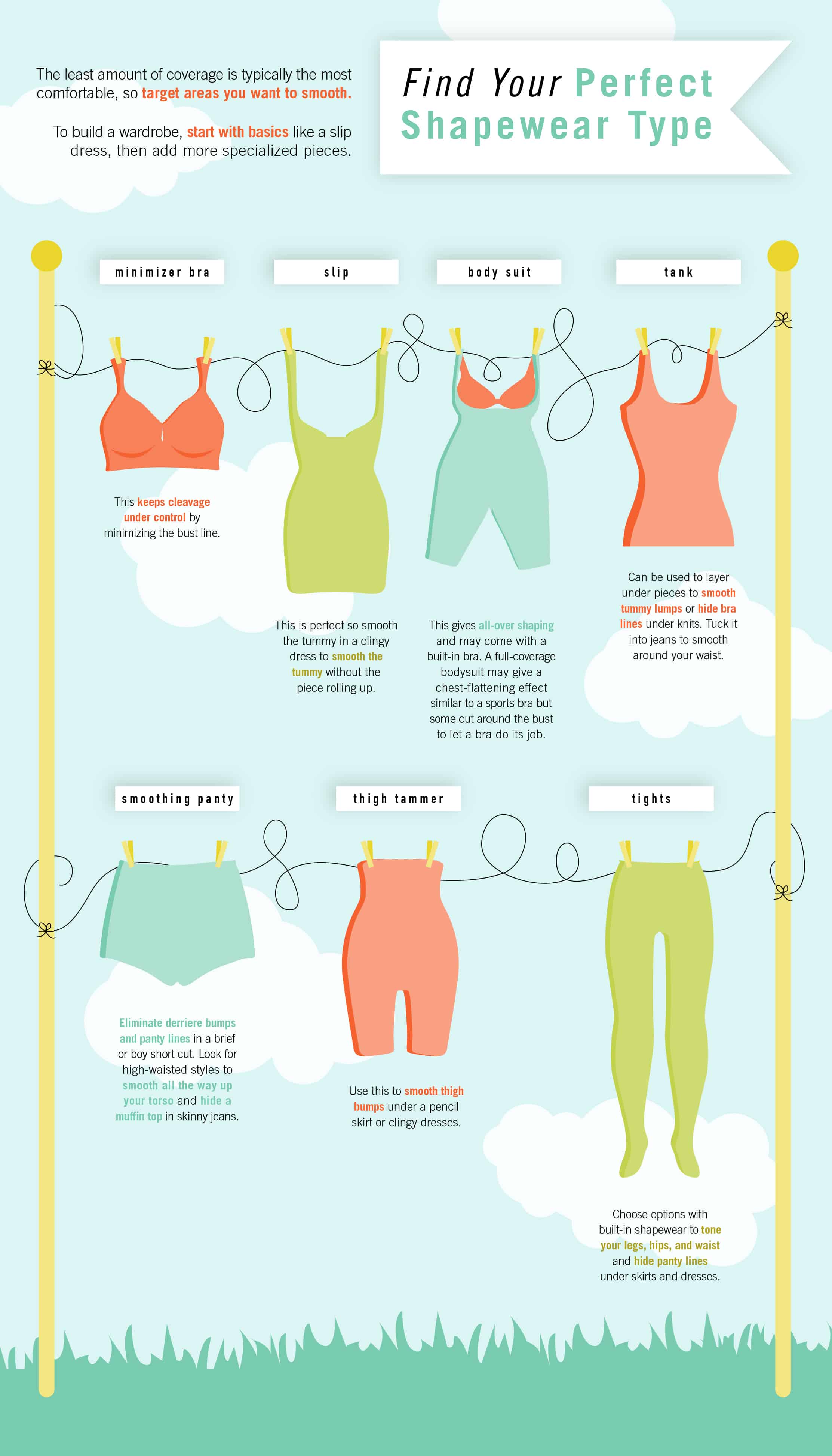 Shapewear has come a long way in the last few decades. The newer variations— comfortable, natural looking, with a smooth shape—no longer include stiff boning that threatens to crush organs. The trick is to find the right one that targets both the areas you want to smooth over and the occasion when you want to wear it.