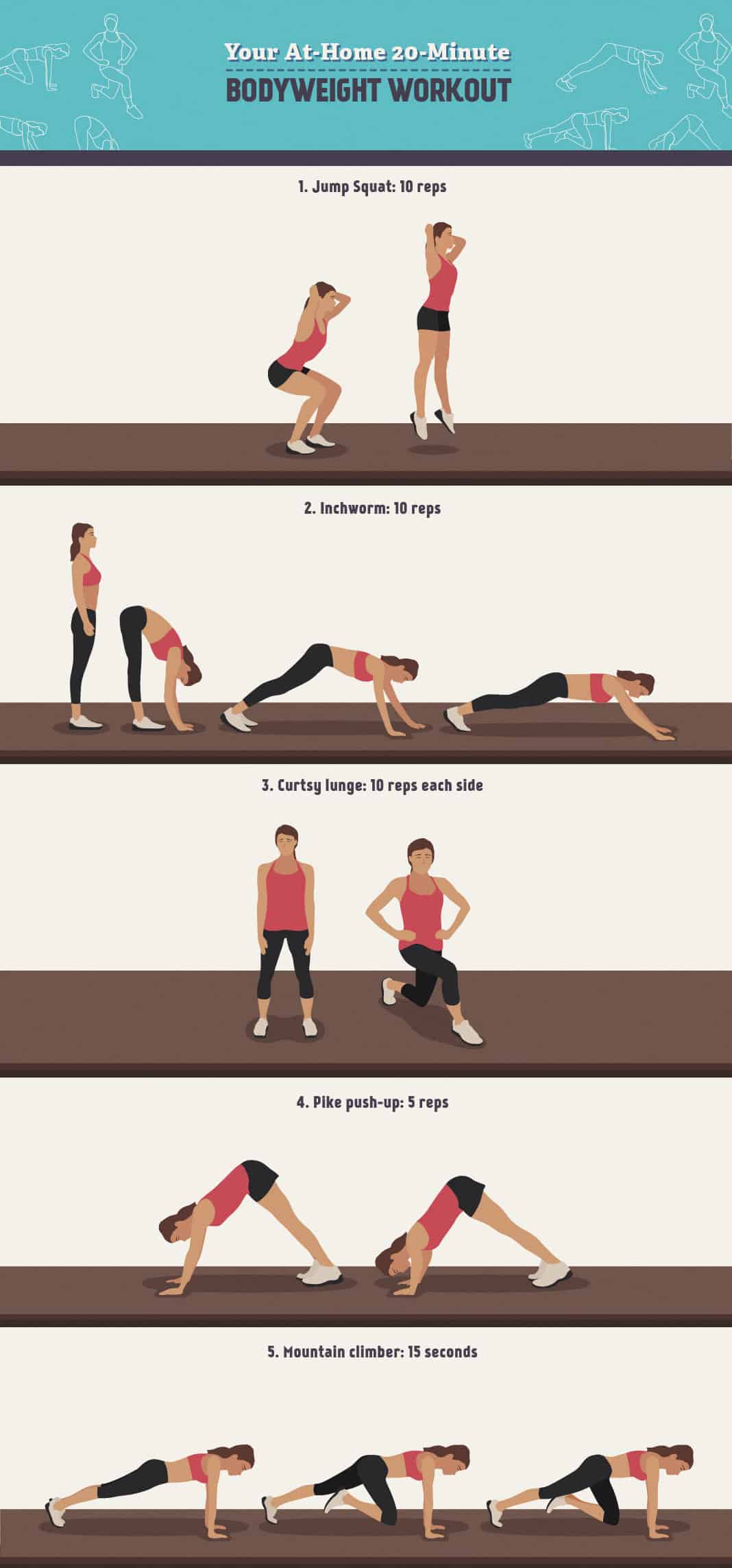 This high intensity 20-minute bodyweight circuit is sure to be a heart-pumping, sweat session good enough to melt the frost right off the tip of your nose.