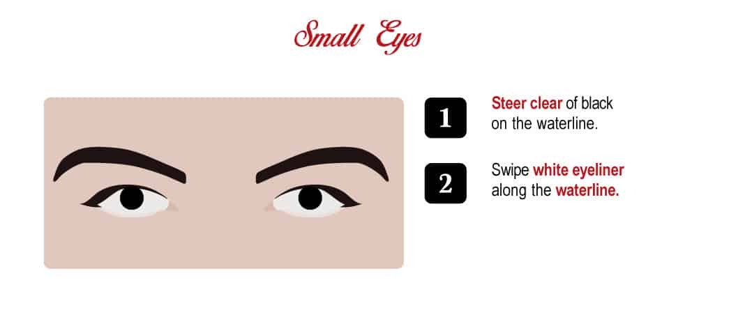 Steer clear of black on the waterline, which can make eyes appear even smaller. Instead, swipe white eyeliner along the waterline to open eyes and give your face an awake look.