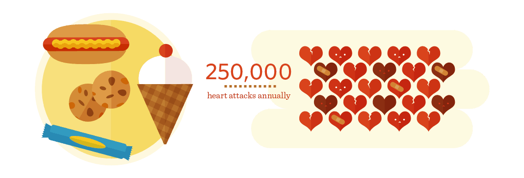 Trans fats don’t only hurt your heart—besides clogging your arteries, they’ve also been linked to certain cancers, and not to mention one of the biggest culprits of the obesity problem. In fact, researchers from Harvard School of Public Health believe eliminating trans fats from the American diet could prevent 250,000 heart attacks every year. Sure, you’ll find trace amounts in meats and full-fat dairy, but almost all the trans fats we consume come from hydrogenated or partially hydrogenated oils that were solidified to extend their shelf life. Prime suspects include fast food, packaged foods like microwave popcorn, margarine, cookies and crackers, and even granola bars. Avoiding them all together is nearly impossible, so do your best to avoid packaged foods as much as possible and swap your tub margarine for olive or canola oil.