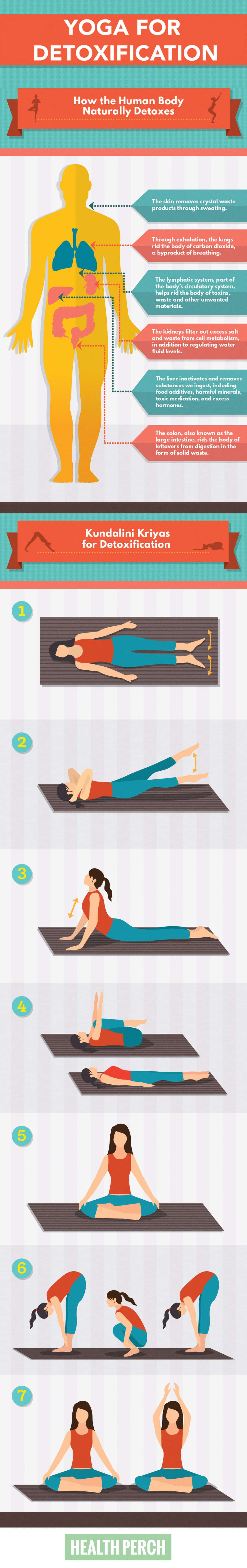 While all forms of yoga ultimately help the detoxification process, the following Kundalini kriyas (or exercise sets) and yoga postures are especially helpful. When practicing any form of yoga, stop immediately if you experience pain, modify the pose according to your body, move onto the next, or simply rest.