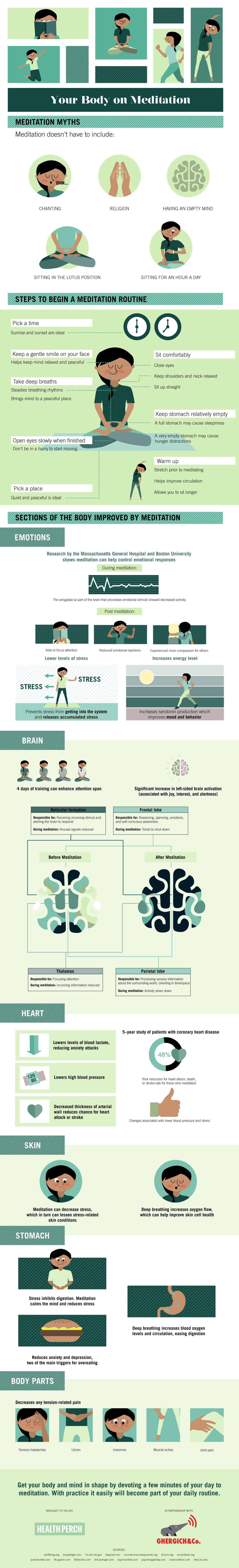 Meditation is more than just sitting lotus style and working on your ohm for hours on end. Setting aside 10 minutes from your day and relaxing your mind can have lasting health benefits. From controlling emotional responses to improving bodily health—meditation can give you a new lease on life.